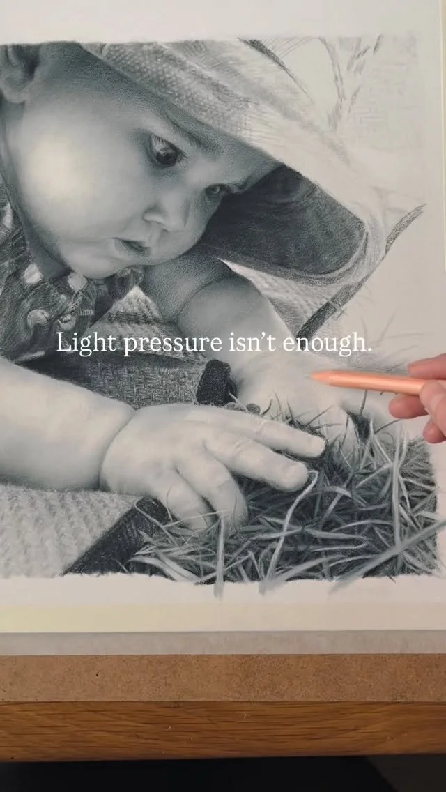 Over time, you'll develop your own rhythm - drawing, erasing, blending with the stump, drawing again. It becomes a kind of dance between these elements. I find myself rotating through the application of pigment, softening with a stump and shaping with an eraser. The effectiveness of each tool will vary based on your paper, but that's part of the fun of discovering what works best for you.